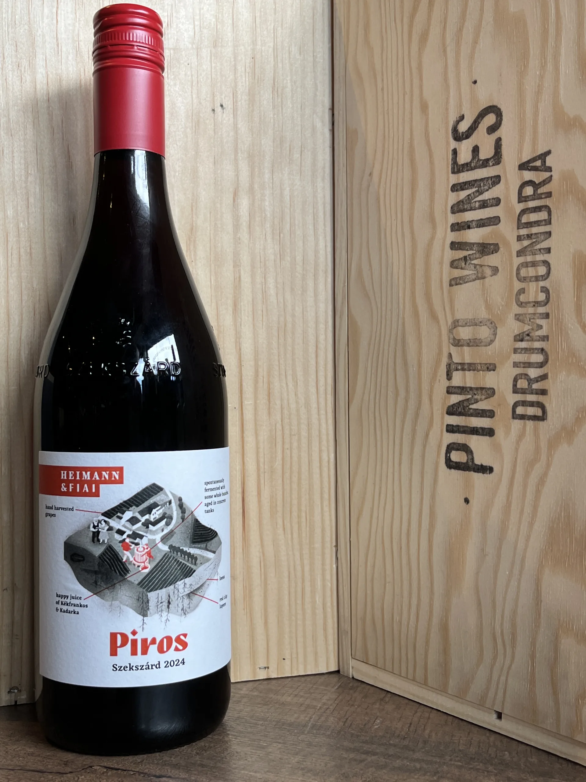Fermented and aged in concrete. Stems add woodiness, but no barrels were used. Sagrantino gives a touch of grip, while Kékfrankos and Merlot add fruit, meatiness. Spicy, fresh, and chillable from Southern Hungary.